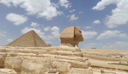 Apos o café da manhã saída para descobrir o auge da arquitetura antiga, localizado no Complexo de Giza para visitar as Três Grandes Pirâmides do Egito; Quéops, Quéfren e Miquerinos, a única maravilha que ainda existem entre as Sete Maravilhas Antigas. (por determinação do Ministério do Turismo, a entrada no interior da Grande Pirâmide requer um ingresso extra, oferecido em número limitado ao dia e adquirido pessoalmente pelo visitante que não está incluso). Visita ao Templo do Vale do rei Quéfren, e seguimos para visitar a Grande a Esfinge, o maior colosso do mundo com forma de Cabeça humana e corpo de leão simbolizando a união entre a inteligência humana e a coragem do leão. Visita a uma galeria de papiros com almoço em restaurante local, e o resto do dia com passeio OPCIONAL aos monumentos de Memphis e Sakkara. Traslado ao hotel para pernoite.